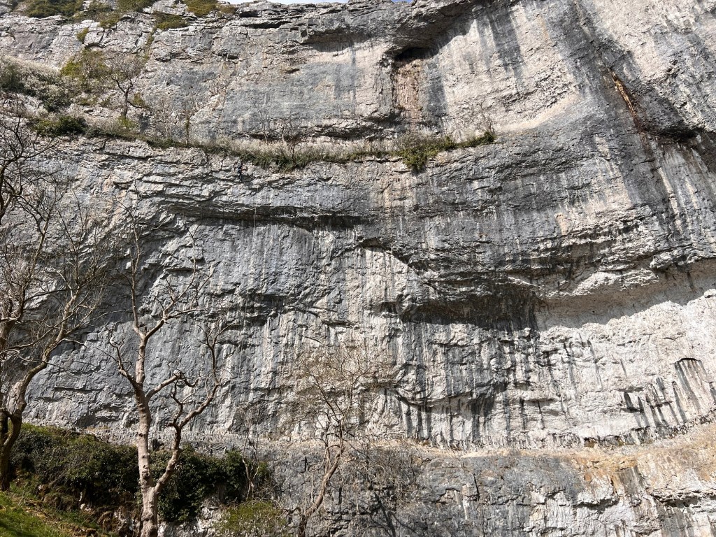 The start of the race passes by Malham Cove, a beautiful climbing spot with towering, overhanging limestone routes. You ascend steps (so many steps) to Weets top with stunning views of rolling hills. I was pretty out of breath at this point but managed to occasionally peek behind me to enjoy the stunning landscape.
