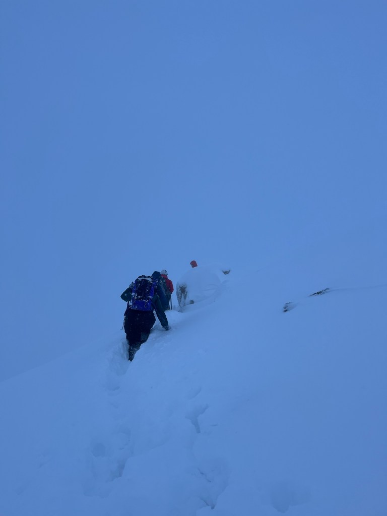 The main takeaway I had this year was how dangerous things can get – and how quickly that can happen. To preface this point: we were always kept incredibly safe with exceptional guidance. However, what felt like a beautiful, blue-sky day at the bottom of the hill became a bit of a nightmare as we neared the summit. Gusts whistled past us as we navigated the icy terrain and postholed repeatedly. I felt incredibly cold every time we paused our walk and shivered as we had our lunch. We warmed up quickly in a small shelter that protected us from the howling winds and it suddenly dawned on me: if I had twisted my ankle in one of those many post holes and we didn’t have a shelter, this could easily go from a fun day out to a disaster.